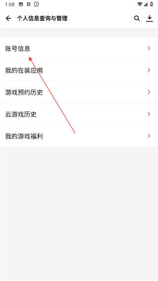 3、进入个人信息查询与管理页面后,点击选择账号信息。