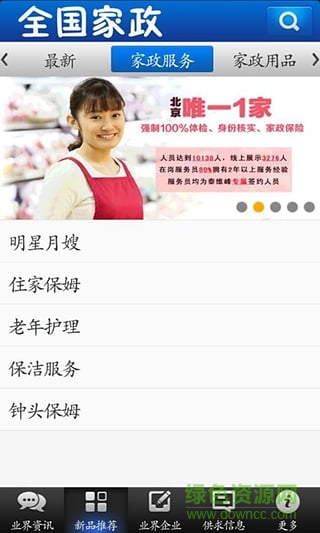 全国家政是一个将利用现代网络技术和现代通信技术为载体APP应用平台,通过信息采集和资讯过滤为手段,向广大消费者提供一个较为完整、真实可靠、服务规范的各类家政服务资源。