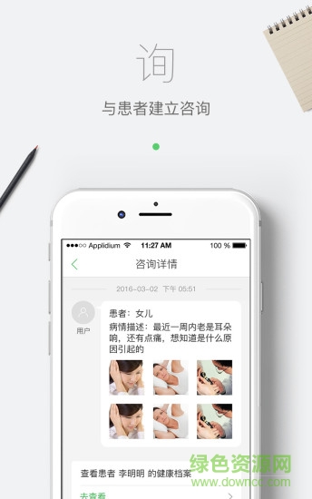在线医生医生版是由广州欧凸欧健康科技有限公司开发的一款供医生管理患者的手机医疗管理应用,在这里医生们能够为患者电子病历,并且随时与患者沟通,来提高医疗质量和效果,帮助病人快速恢复提高自身品牌,是医生们的好帮手。喜欢的小伙伴快来绿色资源网下载吧!