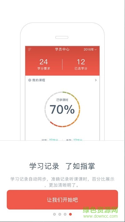 3、主要有选课及听课学习的功能,学员在移动端听课学习记录会自动与PC端同步