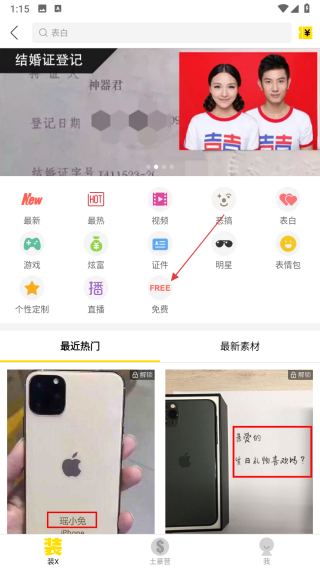 1、打开装B神器APP,在首页点击免费分类,进入免费模板选择界面。
