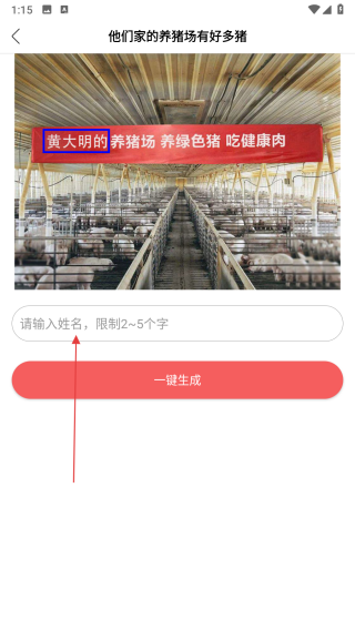 4、输入完成后,点击一键生成按钮,生成带有自定义内容的效果,最后可选择分享或保存到相册。