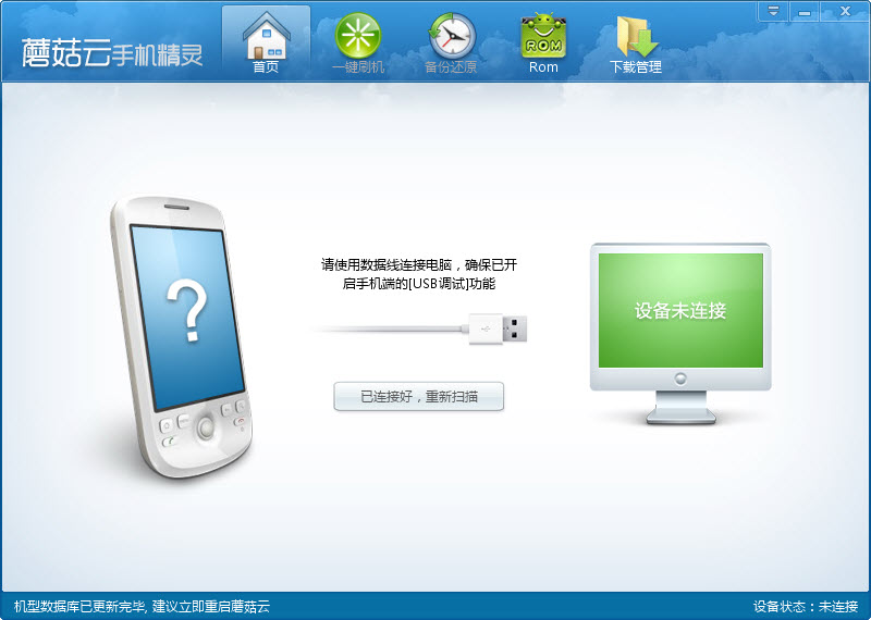 1.蘑菇云手机精灵是一款由资深移动互联网团队精心打造的安卓手机刷机精灵。