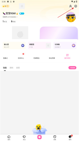 2、再我的页面内,点击右上角的设置按钮,进入设置界面。