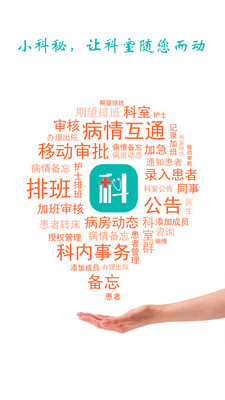 小科秘app是一款为科室量身定制的办公软件。小科秘app专注于医院科室的移动管理需求研究,基于科室行政、患者管理、科际拓展进行交互架构设计,帮助科室主任和护士长在移动环境下实施通告、审批、排班、查房等工作,也为医生护士们提供了如患者管理、病床管理、病情管理、病情互通等高效协作工具。在科室带头人、医护同事、住院及出院患者之间搭建起一个需求互补、友好生态的互动桥梁,增加医患沟通紧密性,提高医生护士的工作效率,让内部协作更便捷,科室管理更轻松。