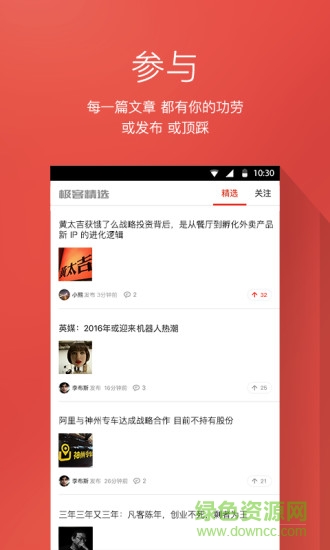 极客精选app是一款手机新闻资讯阅读软件,这里面的每一条内容都是精心挑选的,来自网友们的分享与推荐,绝对没有烦人的广告,你可以用顶让好的文章传播给更多人看到,用踩来屏蔽不好的内容,感兴趣的快点下载体验吧。