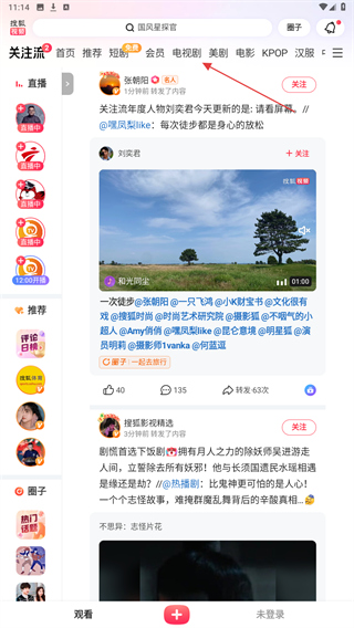 1、打开搜狐视频的APP,进入时点击右下未登录的按钮。