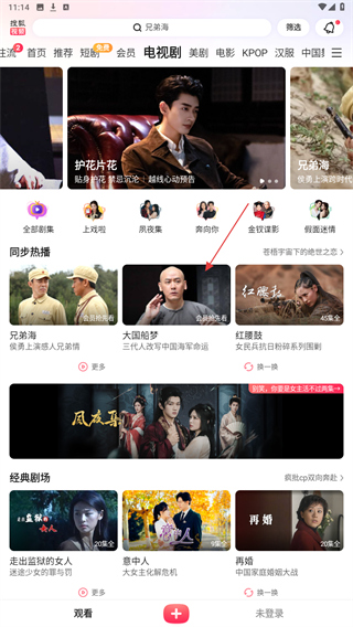 1、启动搜狐视频的App,在首页上方点击电视剧的标签。