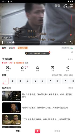 3、进入播放的页面内,点击画面右侧的按钮能够更好的观看。