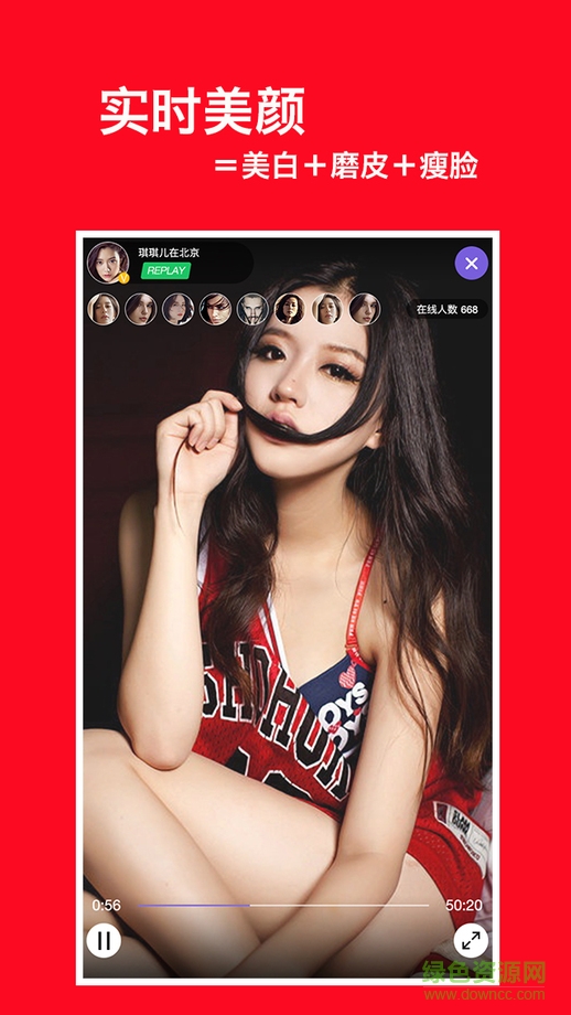 高清美颜:高清直播流量消耗小,实时美颜=美白磨皮+瘦脸!
