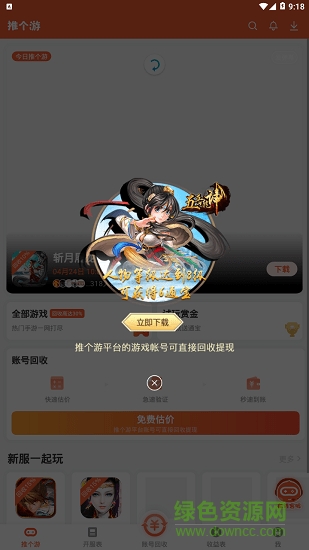 推个游是游戏账号回收软件,回收账号马上进行提现,现在游戏玩家的账号都是充值了超多金钱的,但是你放在那不玩有浪费了,这里你可以将你的账号进行卖出,或者进行出租也可以,需要的用户快到绿色资源网下载体验吧!