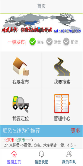 主要是给车主和货主使用,货主可以发布货源,车主可以通过app查看发布的信息,同时电话联系,同时车主/货主也能查看实时新闻消息
