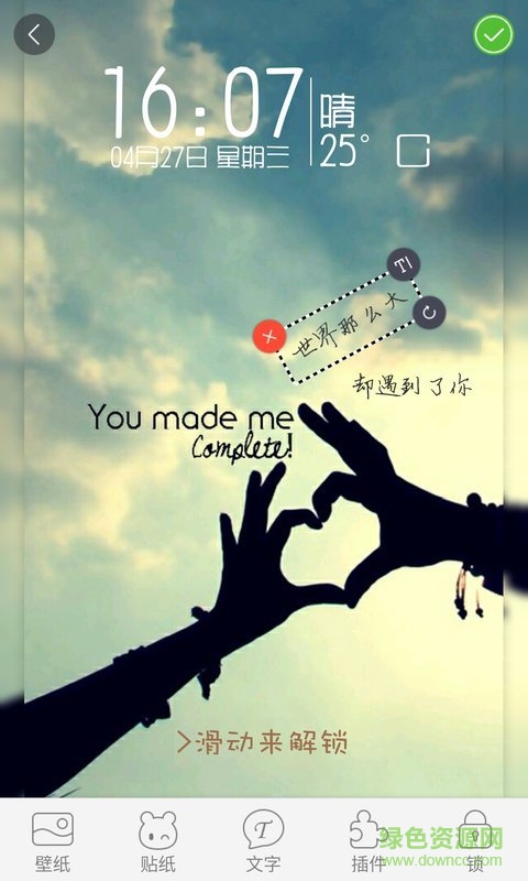唯美爱情主题锁屏,壁纸精美加上浪漫的宣言,让我们的锁屏充满爱的味道,简单的操作,强大的功能,给予你不一样的体验。
