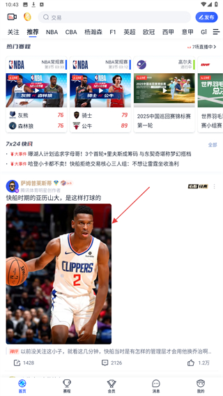 腾讯体育直播免费是一款看nba直播必备应用,此版本由栖叶,福利,请低调使用,最全的赛程,这款应用不仅提供NBA、英超和中超等顶级赛事的直播,还汇聚了大量的体育资讯、赛程安排和精彩集锦,用户可以通过手机或平板电脑方便地观看比赛直播,享受高清的观看体验。