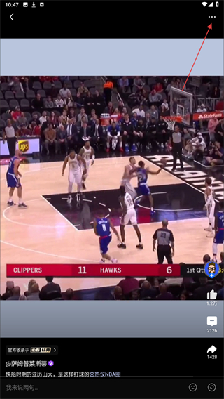 2、在视频播放页面,点击右上角的三点更多按钮,弹出操作功能选项栏。