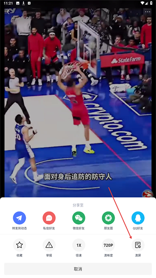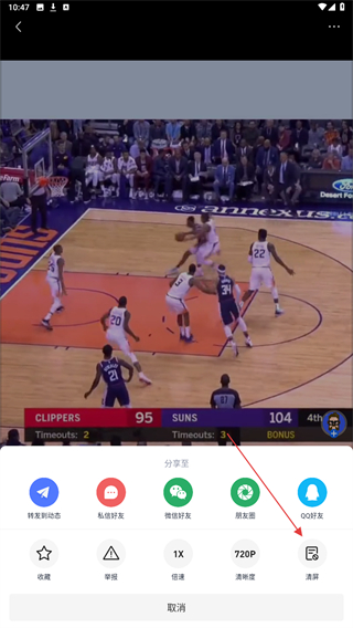 3、在弹出的操作选项中,找到并点击清屏的按钮,即可开启清屏模式。