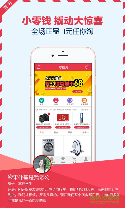 在零钱淘,1元淘倒超热门超潮流超IN的商品.