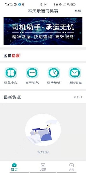 奉天承运司机端是为货运司机提供便捷办公服务支持的助手平台,每项功能以及业务都清晰展现在软件当中,司机在使用时更加便利,为整个货运过程提供有利帮助,有需要的司机不妨来下载了解更多吧!