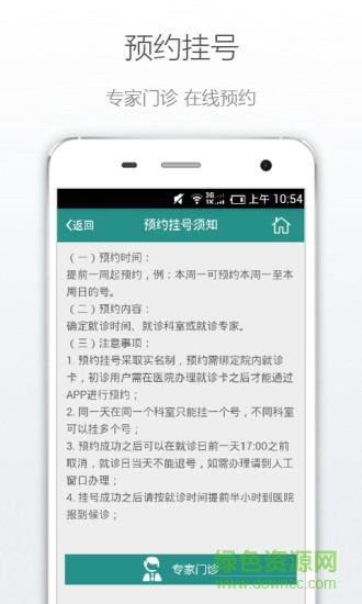 2.【预约挂号】提供本院全部科室专家门诊的预约挂号功能,患者只需一部手机,即可完成预约挂号,并且随时随地可以查看叫号情况。