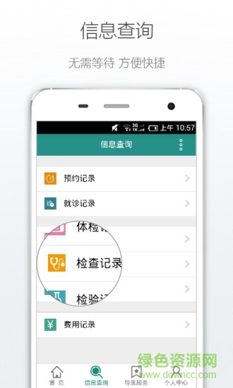 3.【信息查询】患者可以通过客户端轻松查阅自己的体检、检验检查报告单,免去了用户往返医院带来的不便。