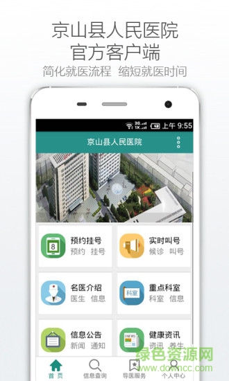 京山县人民医院app是京山县人民医院官方推出的手机客户端,主要是服务于京山县人民,方便大家就医咨询,在手机上就可以排队挂号、在线咨询专家了,再也不用排队了,有需要的快来绿色资源网下载吧。