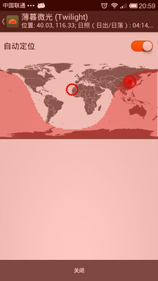 薄暮微光(Twilight) 应用使您的设备屏幕适应一天中的时间推移。它会在日落后过滤掉您手机或平板电脑屏幕上的蓝色光谱,并以柔和而悦目的红色滤镜来保护您的眼睛。滤镜的强度会根据您所在地日出与日落时间的日照周期而平滑地调节。