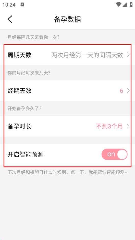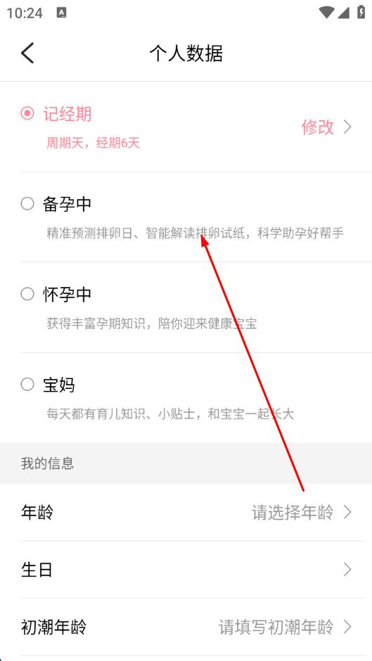4、进入备孕数据页面,完善相关数据设置,即可切换到孕期模式。