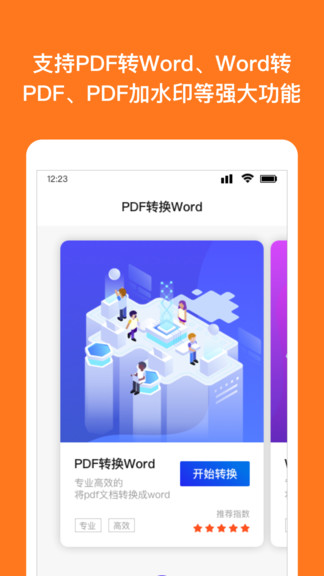 《文档格式转换》支持pdf转word、word转pdf、pdf加水印等强大功能