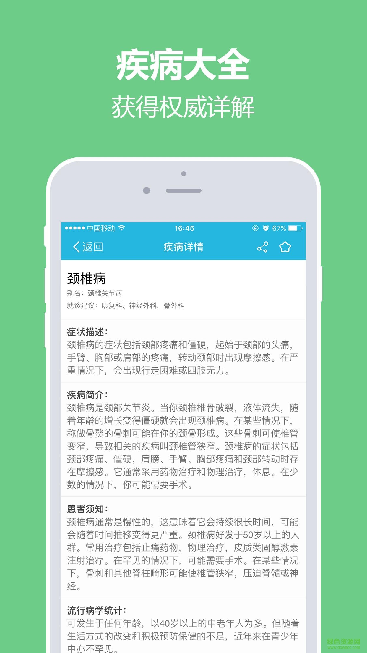 了解详细疾病知识,让您就医时能够与医生轻松沟通;轻松查找全面的医后护理、调养方法,帮助您更快恢复健康。