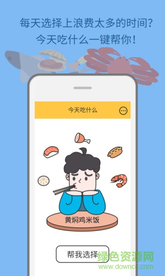 今天吃什么app,一款专为解决吃喝问题而推出的美食推荐平台,在这里你可以随时使用本应用帮你选择吃的,吃饱了就没事做了吗?你还可以来吃小鲜肉呢!菜名随你变换,想吃就吃,需要的用户就快来绿色资源网下载吧!