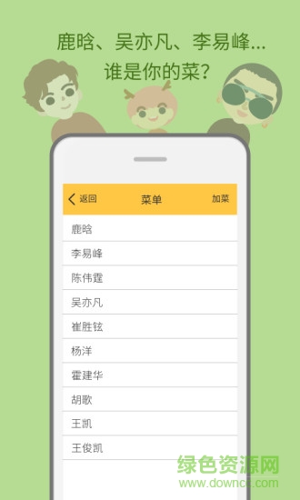 3.想吃小鲜肉?把菜单名换成李易峰、鹿晗、陈伟霆、胡歌、霍建华、TFBOYS、吴亦凡、GD、杨洋、杨幂、王俊凯、王源、华晨宇…各种花样玩法等你来试!