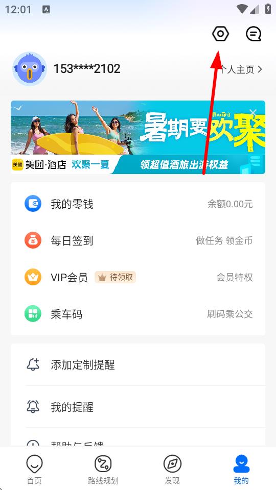 2、在我的页面右上角,点击设置图标,进入设置界面。