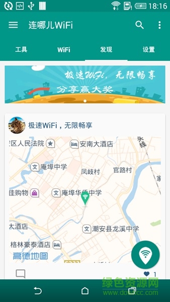 连哪儿WiFi app是一款为安卓用户提供免费上网服务的手机应用,超给力的wifi钥匙,并自带wifi加速,为用户带来更稳定的wifi连接,欢迎大家在绿色资源网下载体验。