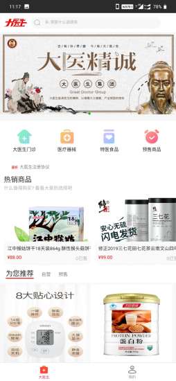 大医生商城系统是集合产品展示、产品推荐、收藏产品、购物车、在线支付、查看物流、订单 管理、销售报表和优惠积分于一体的移动购物应用软件。