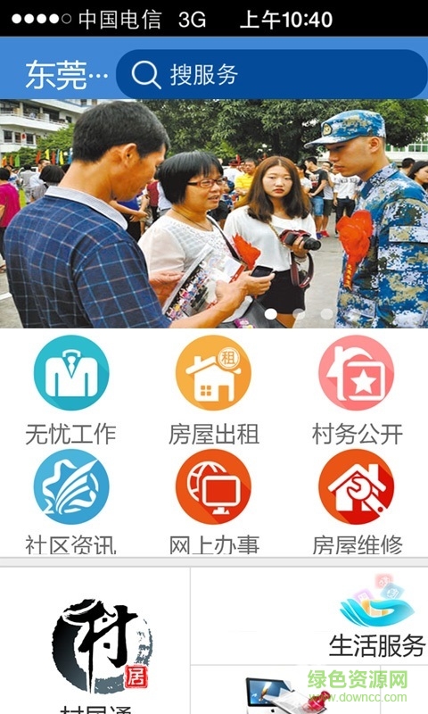 服务频道有 :政务办事、村居通、生活服务、微观等,