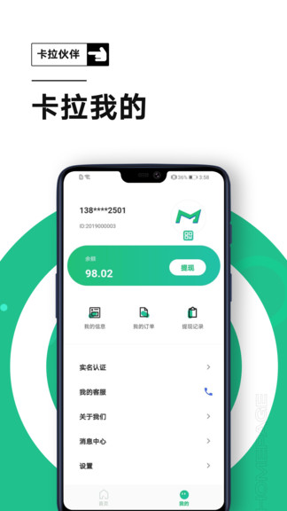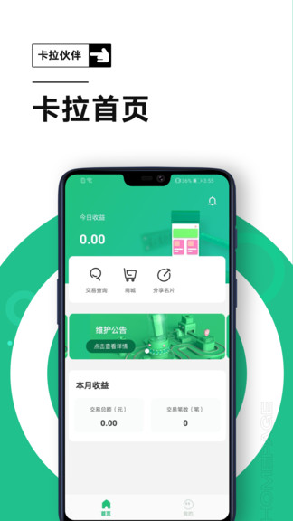 卡拉伙伴app为用户提供了订单管理、业务数据查询等相关服务功能,用户可以使用这个程序在线关注门店每天收益数据变化,在线进行数据统计、分析,随时都能够关注最新的交易数据动态,赶快来安装体验吧。