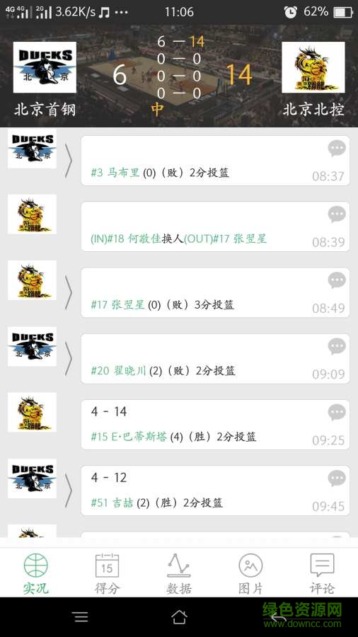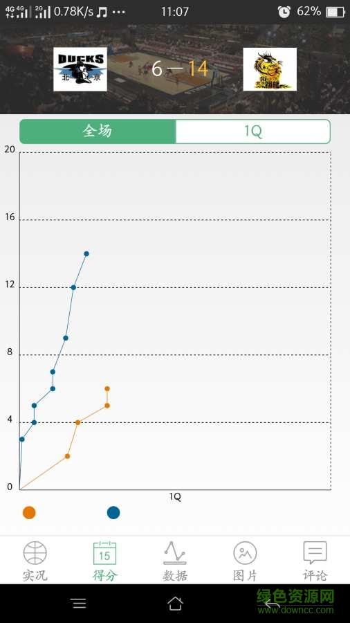 爱球场录入客户端能够提供球员得分曲线图,对球员数据进行现场的时时录入