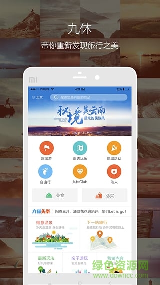 九休旅行app是一款由北京九休信息科技有限公司开发的集旅行景点,吃,住,路线等等为一体的旅行宝典,不单单只是告诉你旅游攻略哦,吃喝玩一全套全部了带走,喜欢旅行的朋友赶紧来绿色资源网下载吧