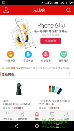 一元热购app是一款新型的一元购物手机软件,这里含有手机数码、电脑办公、家用电器、女性时尚、钟表首饰、潮流用品等,用户只需要选择自己心仪的商品,支付一元即可有机会获得此商品,喜爱的朋友赶快到绿色资源网下载体验吧!