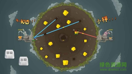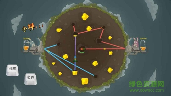 发射你的钩爪射向金块,构建输液线,提取矿液,最先获取500单位液体取得胜利。