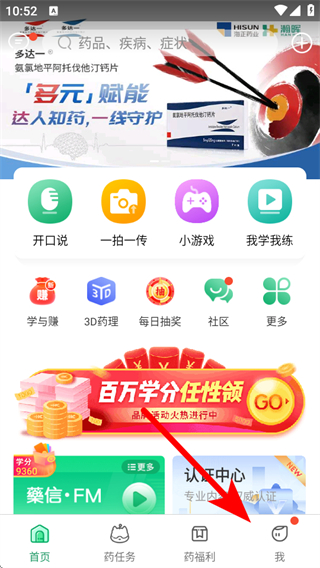 1、打开药信APP后,我们需要点击右下角我,进入个人的页面。