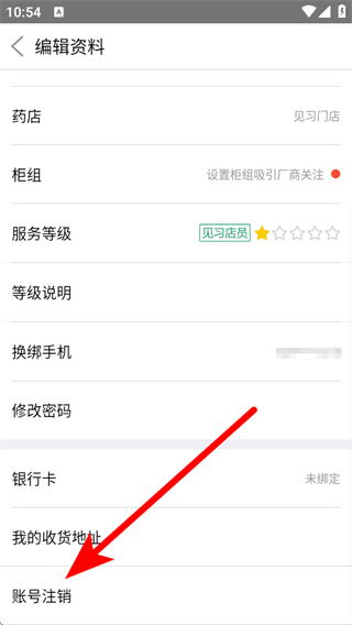 3、在编辑资料页面,点击账号注销选项,进入注销账户页面。