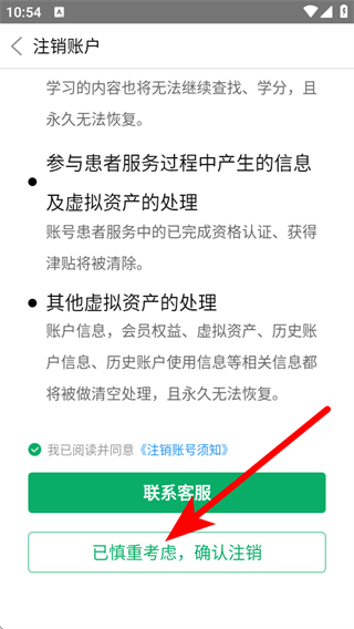 4、在页面勾选须知点击已慎重考虑,确认注销,完成账号注销操作。