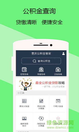 重庆公积金app是51公积金为重庆市民打造的一款查询公积金手机客户端,方便为市民提供便捷的公积金查询服务,快速查询公积金资讯等,有需要者欢迎到绿色资源网下载!