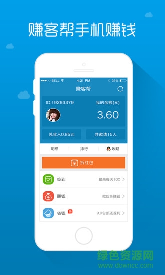 赚客帮app苹果版是一款由赚客版APP官方为用户打造的赚钱平台,有钱一起赚,一元即可提现!完成由赚客帮指定的任务,从而获得相应的报酬,此奖励为您的劳动所得、由赚客帮支付相应报酬。您还在等什么?喜欢就来绿色资源网下载体验吧!