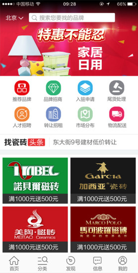 陶瓷信息平台,打造互联网+运营品牌入驻品牌达到2000多家,发展兼容并蓄的业界平台,提供一站式服务,实现找瓷砖和找品牌的快捷。推进移动营销,找瓷砖APP全新发声。在线智能寻找,总有您需要的产品和品牌。