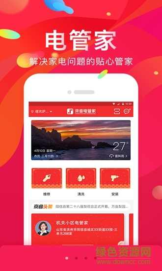 京睿电管家app是一款便捷的家电管理软件,目前已覆盖全国多个城市,专业维修服务定期家电清洗,养成健康卫生的生活习惯,平台收费公正,注册会员即可享受专属服务,欢迎来绿色资源网下载!