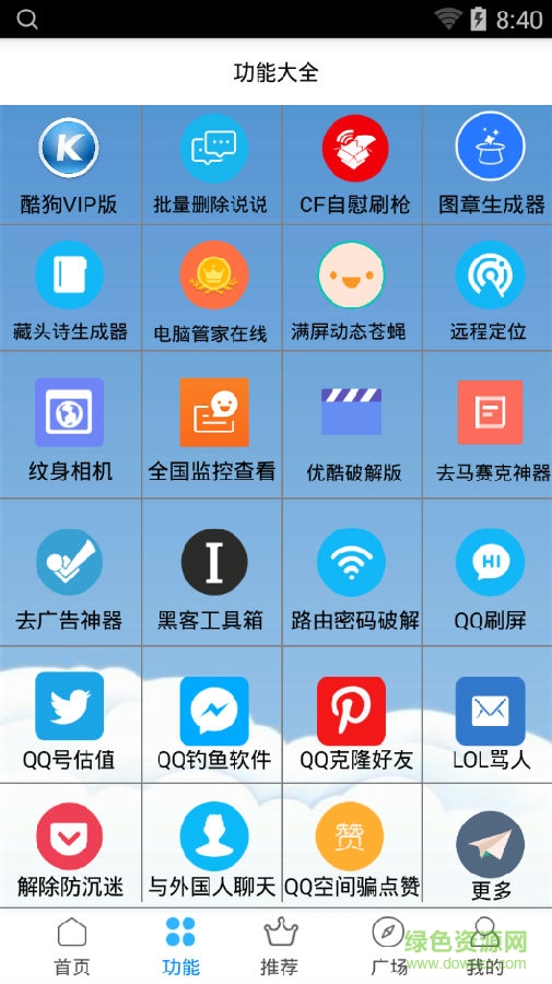 狂人宝盒app是一款功能非常强大的辅助工具,里面功能多多哒,什么qq刷屏,qq克隆,各种去广告,功能非常多,喜欢的赶紧来绿色资源网下载吧