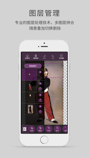 5.【图层管理】专业的图层处理技术,多图层拼合,随意叠加切换删除。随意变装,与明星合照,周游世界,在风景名画中来回穿梭,去游戏里打怪……给你无限的空间去发挥