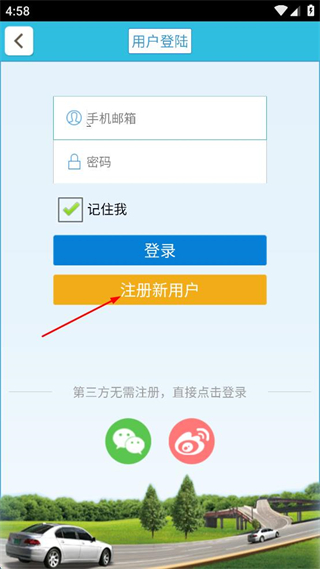 2、在用户登录界面找到注册新用户按钮,点击后跳转至注册页面。
